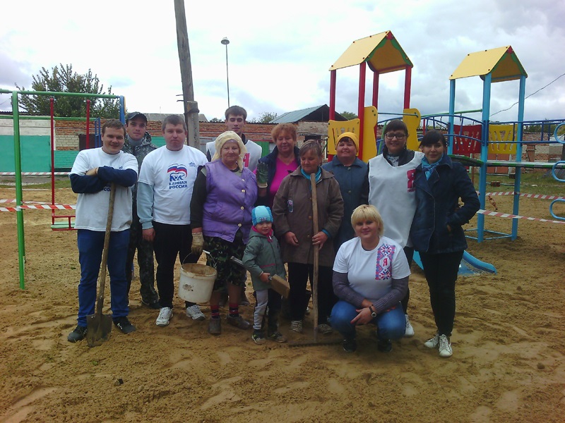 Активное участие в сборе подписей для установки площадки приняли члены Общественного Совета Романовского муниципального района, местного отделения ВПП "Единая Россия" и жители поселения. Администрация Романовского муниципального района организовала подвоз песка и щебня для установки площадки. Члены районной общественной организации ВОО "Молодая гвардия Единой России" разгружали песок и подготовили территорию для площадки. Дети микрорайона с радостью будут играть в этом небольшом детском городке.