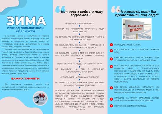 Памятка "Безопасное поведение на водных объектах в зимний период".ВАЖНО ПОМНИТЬ!