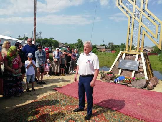 Инициаторами установки креста стали жители райцентра А. Пилосян и П. Тараскин при поддержке иерея Павла Денисова.