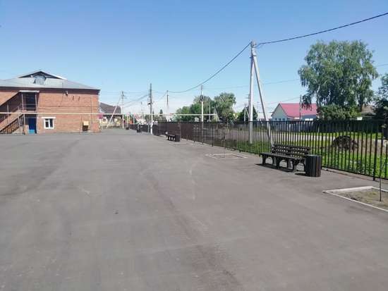 В р.п. Романовка завершилось благоустройству общественной территории, прилегающей к комплексу зданий по ул. Советская д.128 (ДШИ, Управление образования, УСПН и др.)