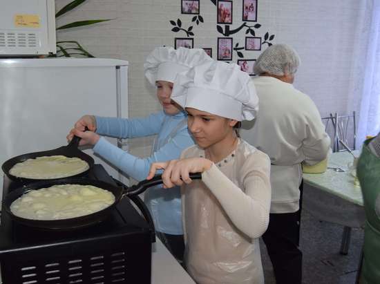 В «Учебной кухне» Комплексного центра социального обслуживания населения Романовского района состоялся мастер-класс по приготовлению блинов, который объединил два поколения: «серебряного» волонтера – Надежду Сердобинцеву и несовершеннолетних получателей соцуслуг.