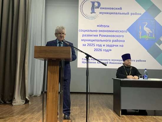 Глава Романовского района А.И. Щербаков провел собрание актива Романовского района, где были подведены итоги прошедшего 2025 года и намечены задачи на 2026 год.
